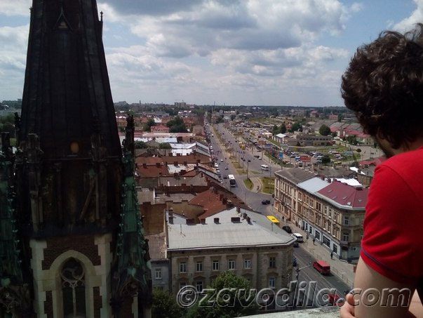 Львов – это совершенно другая эпоха. Наш взгляд сразу привлекло высокое здание – собор в неоготическом стиле. Подойдя ближе, мы узнали, что это храм святых Ольги и Елизаветы. Там нам предложили подняться наверх, по 10 грн. с человека (ну так чисто символически). Мы не пожалели. Как оказалось, это здание является самым высоким в городе – высота этой церкви восемьдесят восемь метров! Панорамный вид на город показал всю красоту Львова.
